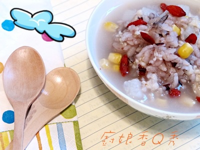 在糙米粥內放些玉米粒和枸杞子,對長期盯著電腦的上班族最適合不過了