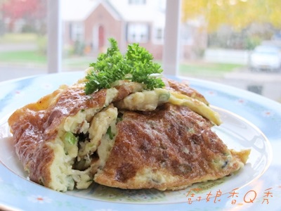 我喜歡將韭菜和香菜切末後加入蛋中,用這個來配稀飯最登對!