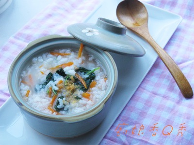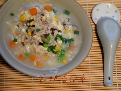 *可用煮好的糙米飯和冷凍蔬菜,再加點麥片一起煮,會濃稠得好像熬了1小時的稀飯哦!