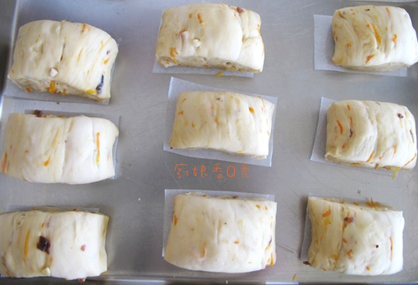 4 放饅頭紙上,進行發酵(室溫25度)50分鐘,待發到2倍大