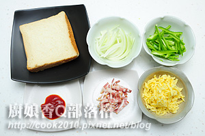 前一天晚上,可先將青椒、洋蔥、培根切好,